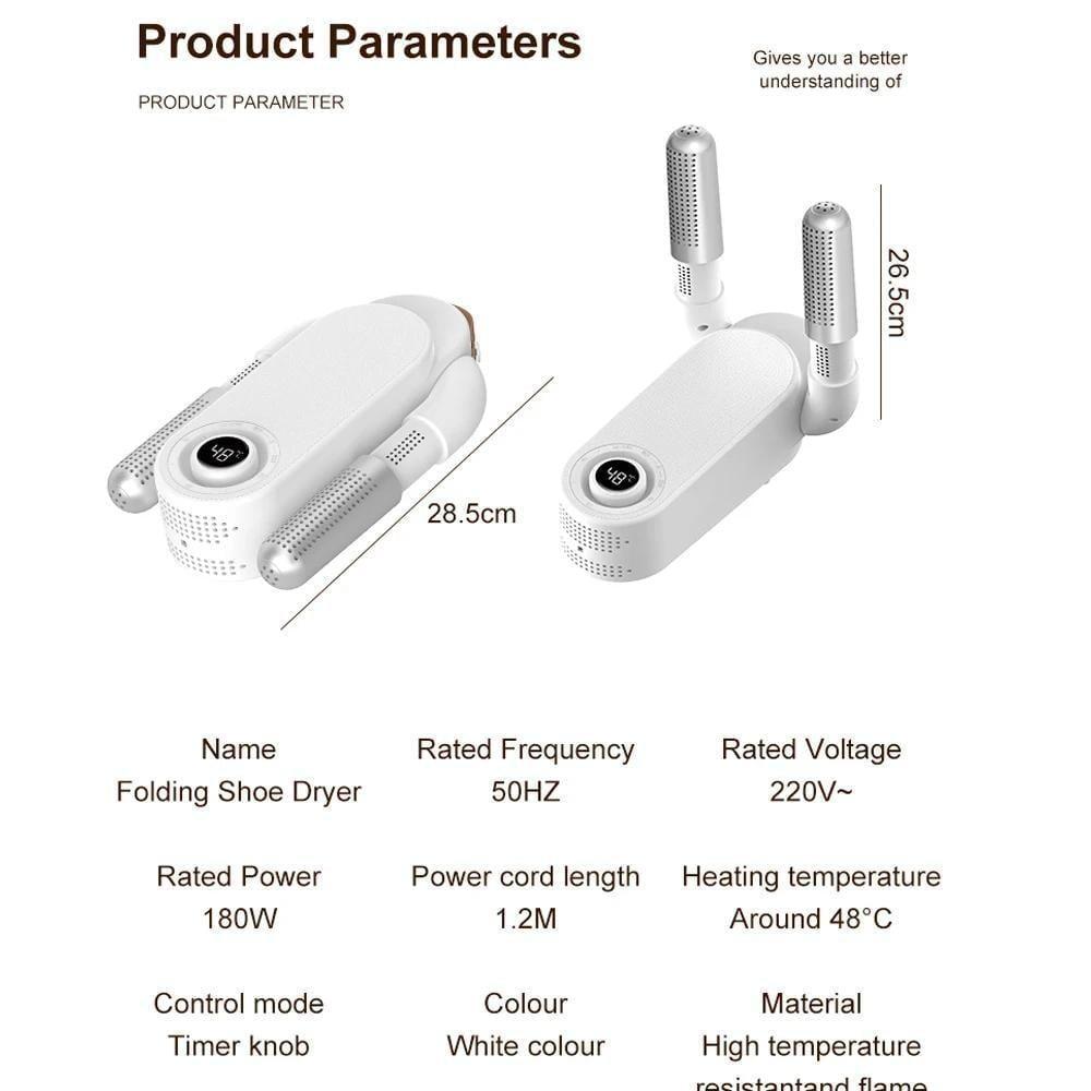 - يجفف الأحذية بسرعة وكفاءة باستخدام تقنية توزيع الحرارة الذكية التي تحافظ على شكل الحذاء دون تلف.